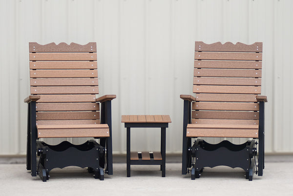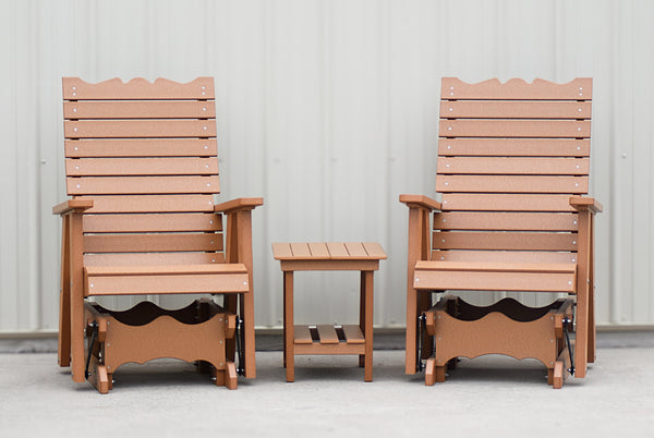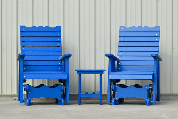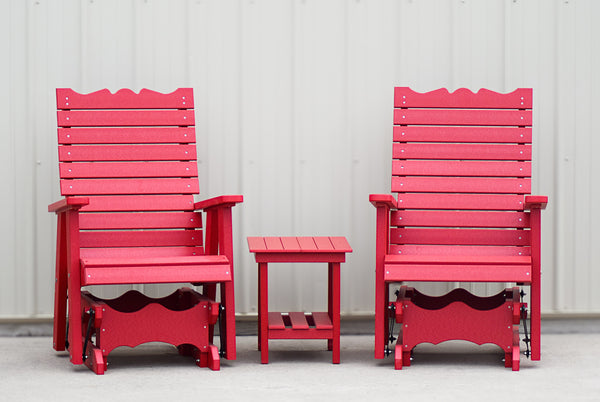 We are pleased to offer a NEW seating arrangement for your back patio or front porch! Built to last and made for low maintenance, our Fan-back Gliders will make you happy. We have our customers' comfort in consideration as well, and that's why they seat like a pro. Go ahead and settle into your favorite one and see how long you stay there!